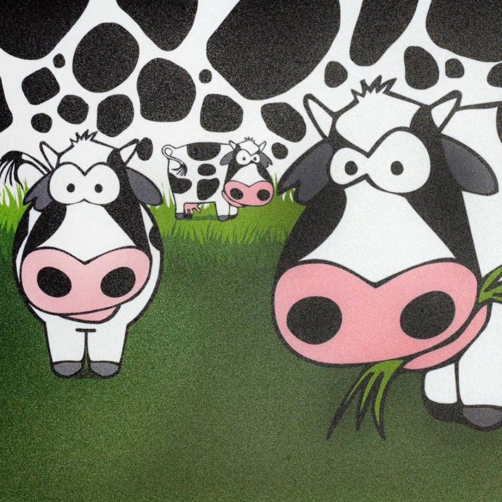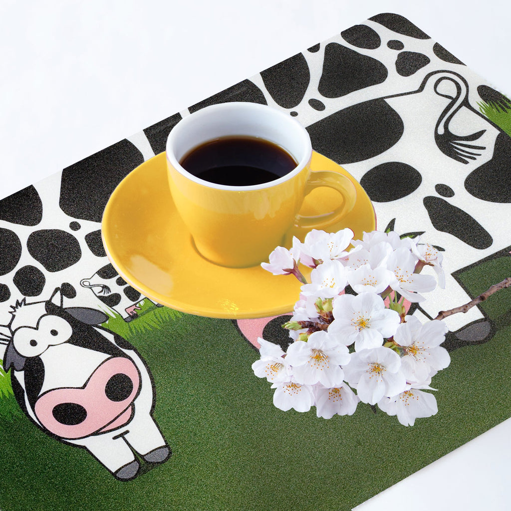 Mantel individual protector de superficies con un diseño único decorado con coloridos motivos inspirados las vacas y diseñado por Giordano di Ponzano. Un elemento indispensable para dar un toque personal a tu hogar.