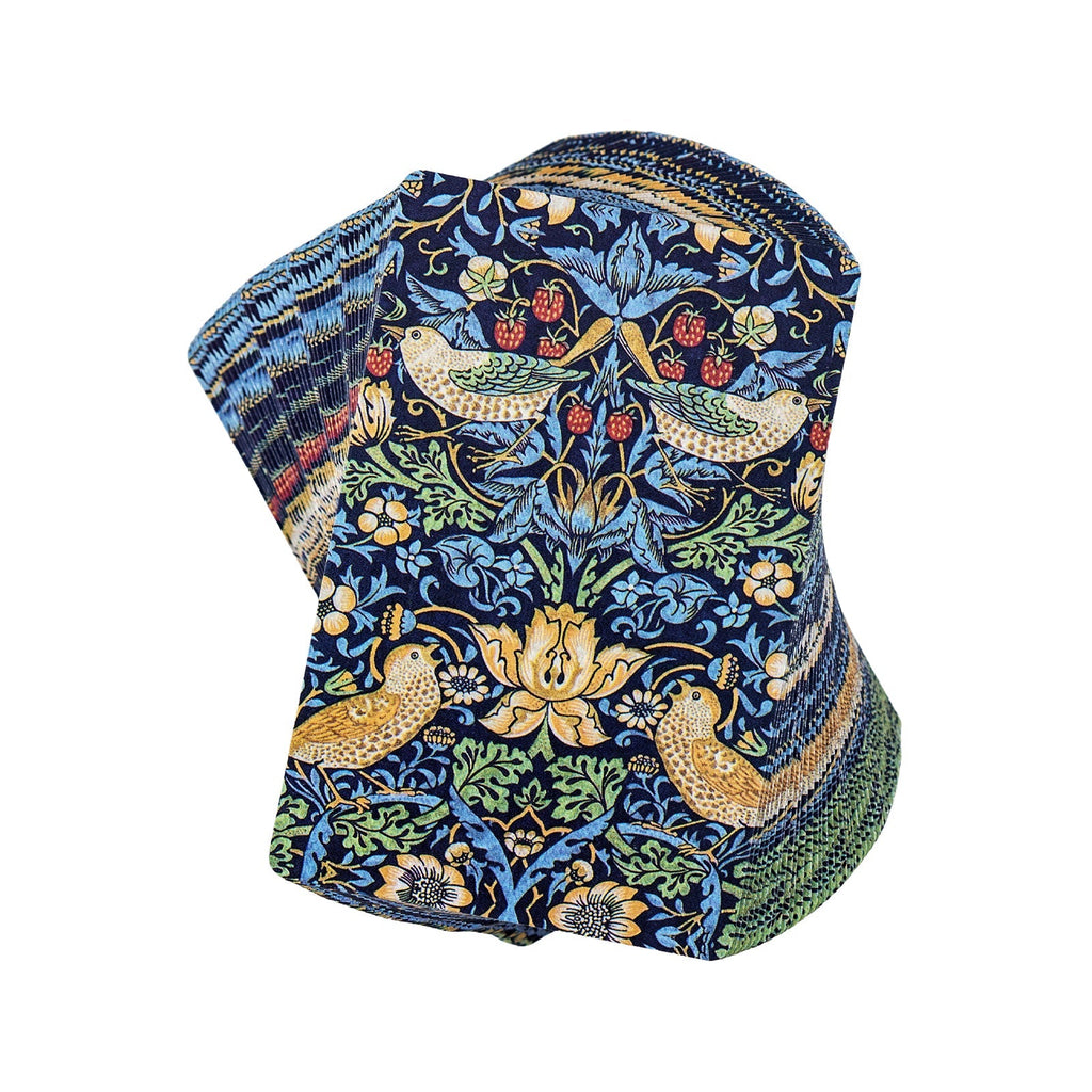 Esta colección se inspira en la obra Ladrón de fresas, uno de los diseños repetidos más populares de William Morris para textiles. Toma como tema los zorzales que Morris encontró robando frutas en el huerto de su casa rural, Kelmscott Manor, en Oxfordshire.