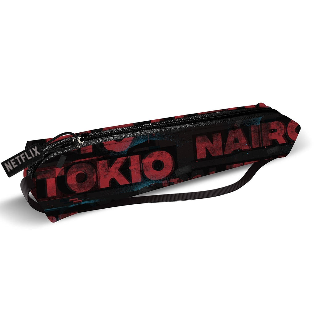 Estuche porta todo alargado con compartimento único. Cierre con cremallera y forro interior.