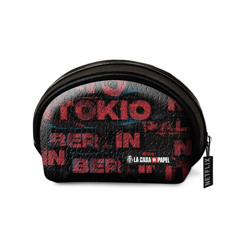 Monedero de compartimento de único cerrado con cremallera y forro interior.